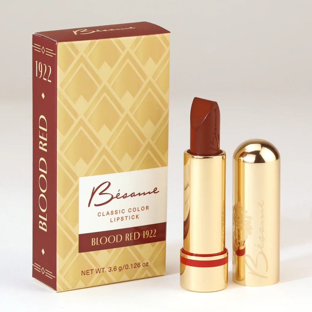 Enriched with nourishing squalene and rich Vitamin E, Blood Red - 1922 will have you in command of your day from start to finish. Triple-pigmented, feather-proof, long-wearing satin finish Subtle vanilla flavor Enriched with Vitamin E and squalene Encased in a gorgeous gold metal tube Meticulously formulated for sensitive skin